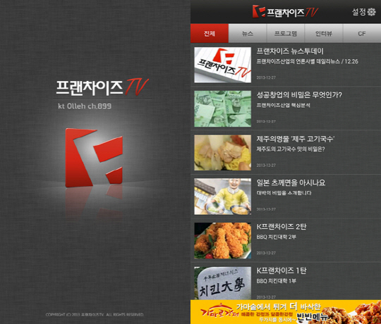 유명 프랜차이즈브랜드의 CF와 다양한 창업 정보들도 동영상으로 즐길 수 있다.