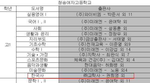 '경북 청송여고 교학사 교과서 채택'
