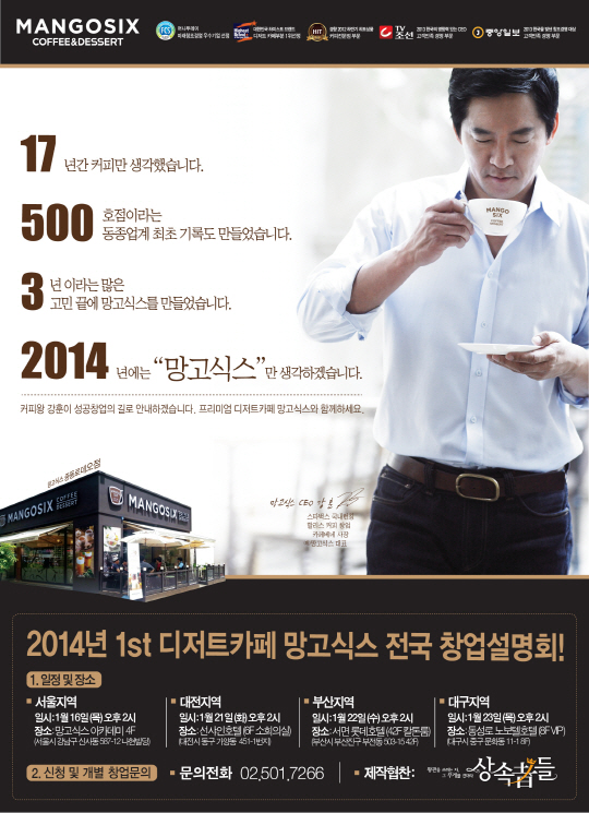 프리미엄 디저트 카페 망고식스가 16일부터 서울, 대전, 대구, 부산 등을 순회하며 사업설명회를 개최한다.