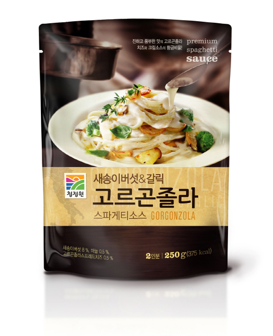 '새송이버섯&갈릭 고르곤졸라 스파게티소스'는 고르곤졸라치즈를 넣어 깊고 진한 맛이 일품이다. 국내산 새송이버섯의 쫄깃하게 씹히는 식감과 고소함이 크림소스와 잘 어우러진다. 여기에 마늘을 넣어 느끼하지 않다.