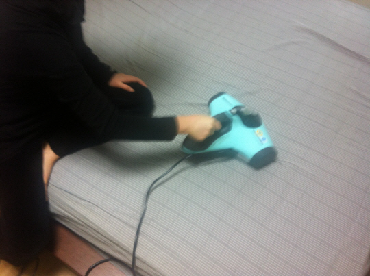 몇년 전에 다른 침구 청소기를 사용해본 적이 있다는 이씨는 "(당시 그 제품은) 무거워서 사용하기에 좀 부담이 됐다. 한번 사용하고 나면 손목이 시큰거릴 정도로 힘들었다"고. "이번 레이캅 지니는 가볍고 콤팩트한 사이즈사용도 훨씬 간편해져서 마음에 든다"며 이번에 리뷰단에 당첨된 뒤 큰 마음 먹고 아이방 침대부터 ?기 시작했다. 침대 매트리스부터 애가 평소 안고 자던 인형, 안방 매트까지 지니를 '쫘악' 돌렸다. 한시간 가까이 사용했는데도 손목에 전혀 무리가 가지 않아 좋았다는 평.