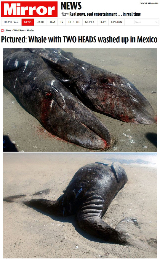 샴쌍둥이 고래의 사체가 발견돼 화제다.
