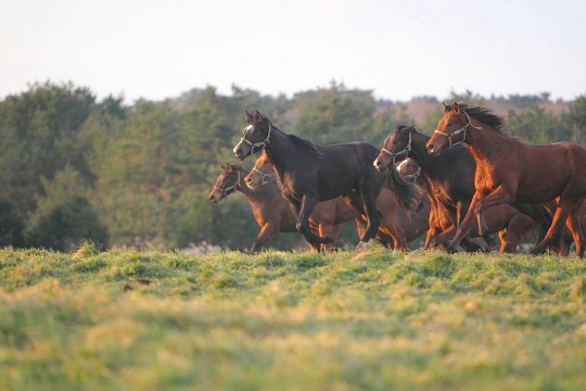 ◇전문 승용마 생산을 위해 독일에서 전문 번식마 28마리가 한국에 들어왔다. 초원을 질주하는 어린 망아지들.