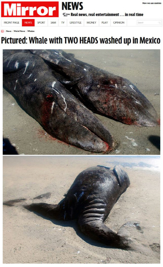 | 샴쌍둥이 쇠고래 사체 발견 / 사진=미러 |