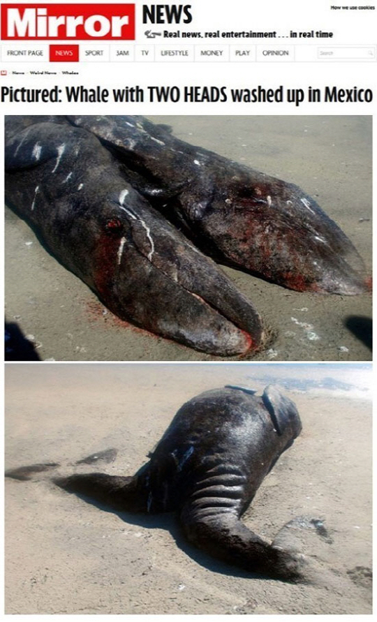 9일(한국시간) 영국 매체 미러는 "멸종위기종인 귀신고래의 샴쌍둥이 새끼가 지난 5일 멕시코 북서부 바하카리포르니아수르주의 석호에서 죽은 채 발견됐다"고 보도했다.