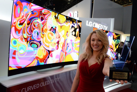 77형 울트라HD 곡면 올레드TV는 전시기간에 앞서 CES 행사 주최기관인 CEA로부터 올레드와 울트라 HD 가 구현하는 최상의 화질과 초슬림 두께의 디자인을 인정받아 비디오 부분 최고 혁신상(Best of Innovations) 을 수상한바 있다. 디지털 트렌즈(Digital Trends)의 AV에디터인 케일럽 데니슨(Caleb Denison)는 "LG의 77형 곡면 OLED TV는 한계를 넘어서 TV미래의 창을 여는 것과 같은 획기적인 제품이며, 그 동안의 TV 제품과는 차원이 혁신적인 TV"이라고 평가했다.