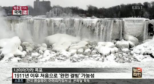 특히 나이아가라 폭포가 있는 미국 뉴욕 주와 캐나다 온타리오 주 일대는 최근 불어 닥친 강추위로 섭씨 영하 37도까지 내려갔다고 알려졌다.