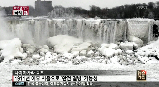 나이아가라 폭포 결빙은 미국 뉴욕 주와 캐나다 온타리오 주 일대에 일주일 이상 몰아치고 있는 극소용돌이로 인해 해당 지역 일대가 섭씨 영하 37도까지 내려가면서 생겨나게 됐다.