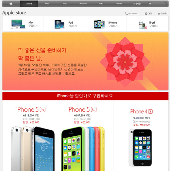 애플스토어 '레드 프라이데이'는 일 년에 단 한 번, 단 하루 진행하는 행사로, 아이폰5S는 81만 8,000원, 아이폰5C는 68만 7,999원, 아이폰4S는 47만 8000원부터 할인된 가격에 구매할 수 있다.