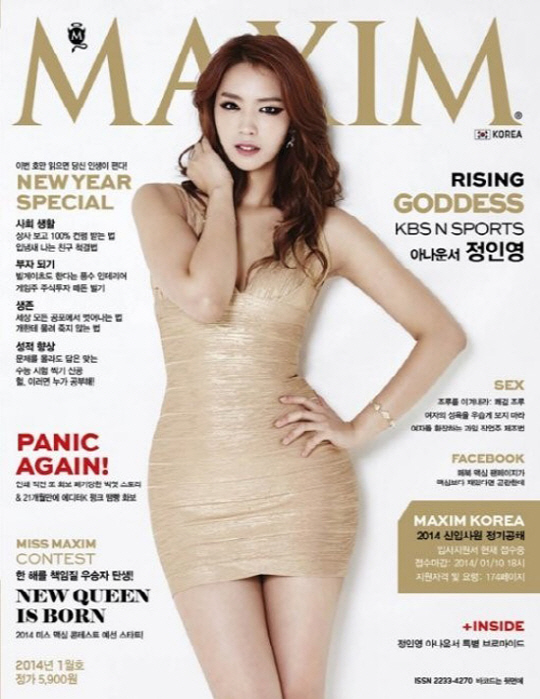 10일 정인영 아나운서의 과감한 노출이 담긴 남성매거진 '맥심(MAXIM)'의 품절 소식이 전해졌다.
