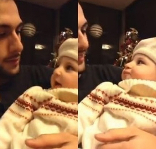 공개된 영상 속에는 한 남성 품에 안겨있는 아기의 모습이 담겨져 있다. 특히 품 속 아기는 남자의 얼굴을 쳐다보며 비트박스를 하는듯한 입모양 선보이며 보는 이들의 눈길을 확 사로잡는다.