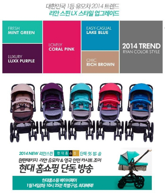 작년 한 해동안 최다 홈쇼핑 완판을 기록하며, 엄마들 사이에서 가장 핫 이슈가 되었던 디럭스유모차인 리안스핀LX가 드디어 오는 1월 14일 오전 10시 25분 현대홈쇼핑을 통해 리안스핀LX 2014년형을 최초로 선보인다.