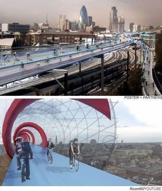 공개된 사진에서는 마치 SF영화의 장면에서나 본 듯한 하늘 위 구름다리 모양의 자전거 전용 도로가 누리꾼들의 눈을 단박에 사로잡았다.