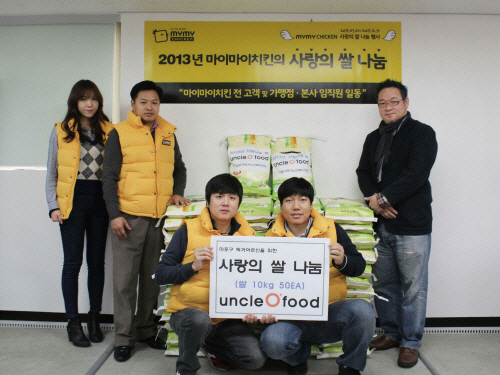 마이마이치킨은 지난해 성공적인 기부 프로젝트에 이어 2014 갑오년 새해에도 연말까지 이어지는 '쌀나눔 프로젝트'를 새롭게 시작했다.