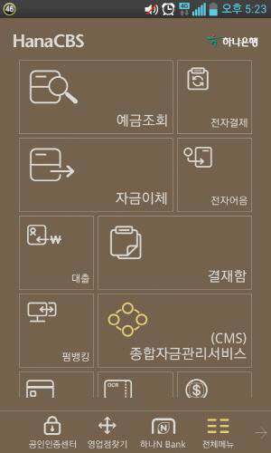 하나은행은 이번 개편을 통해 기존의 단순 아이콘 나열방식을 탈피해 스마트폰에서 터치 및 조작이 쉽고 직관적인 화면으로 서비스를 재구성했다. 조회 및 자금이체 등의 금융거래 화면도 이미지 사용을 최소화해 거래 속도가 높아져 고객 입장에서는 더욱 빠른 업무 처리를 할 수 있다.