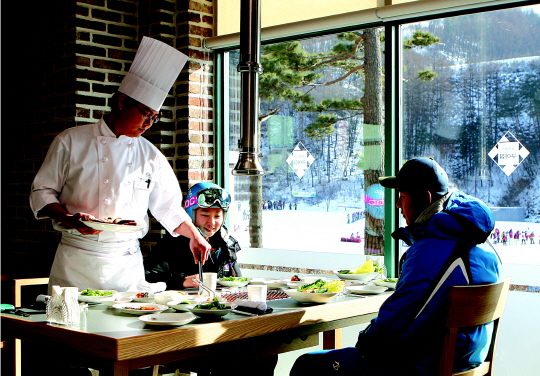 겨울 성수기 이벤트로 캐나다의 대표적인 음식을 만나볼 수 있는 '딜리셔스 캐나다' 푸드 프로모션을 내달 2일까지 뷔페 레스토랑 월드퓨전에서 진행한다. 6만 5000원. 국내에서 가장 높은 곳(해발 1340m)에 자리한 회전식 레스토랑 '탑 오브 더 탑'에서는 돈가스 세트(2만 3000원) 등을 즐길 수 있다.
