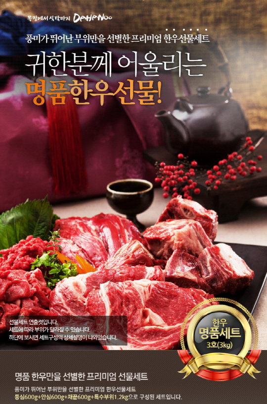 이와 함께 화학조미료, 합성보존료, 발색제를 넣지 않은 최고급 '육포세트'와 100% 한우 사골과 잡뼈로 우려낸 한우 '곰탕세트' 등 다하누의 인기 가공품 선물세트도 준비돼 있다.