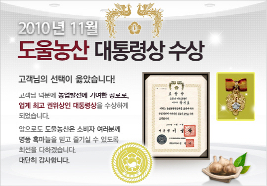 | ◇2010년 도울농산 대통령상 수상 |