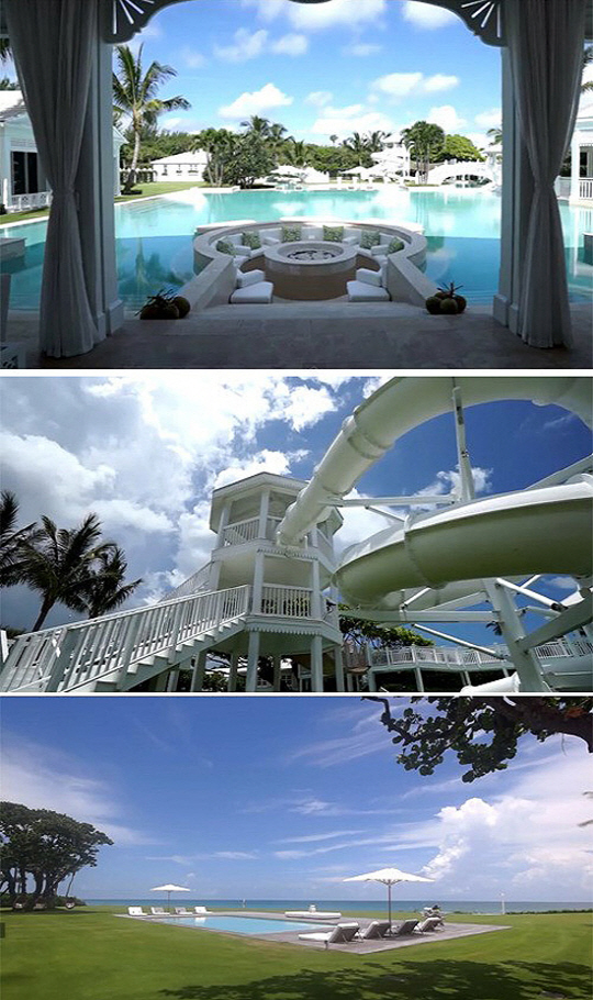 공개된 사진은 미국 플로리다 주피터 아일랜드에 있는 저택으로 게스트 하우스와 테니스 코트 등 5채의 하얀색 건물로 이루어져 있으며 침실의 개수는 13개다. 특히 이 집을 무엇보다도 빛나게 만드는 것은 개인 워터 파크.