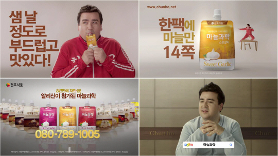 천호식품이 2014년 첫 TV광고를 론칭했다. 천호식품은 8년 만에 리뉴얼한 마늘제품 '마늘과학' 시리즈의 모델로 샘 해밍턴을 발탁하며 신규 TV광고를 공개했다. 마늘이 효능을 강화하고 매운맛과 향을 줄여 외국인도 반한 맛있는 마늘을 보여주는 것이 이번 광고의 콘셉트다.