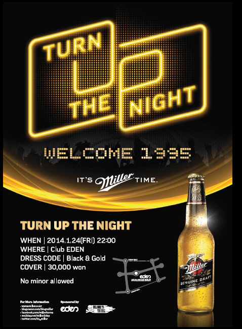 프리미엄 수입맥주 밀러 제뉴인 드래프트(Miller Genuine Draft, 이하 밀러)는 오는 24일, 서울 역삼동 클럽 에덴(Eden)에서 '턴 업 더 나잇, 웰컴 1995' 클럽파티를 개최한다.