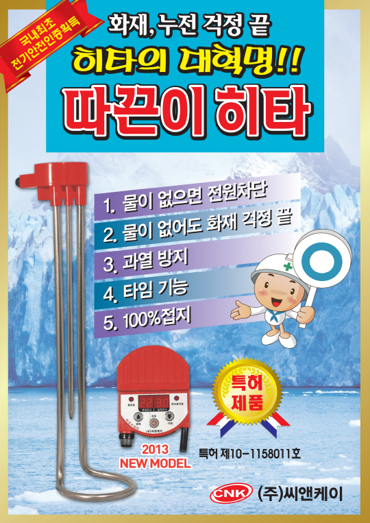 농가나 소규모 공사장, 선박 등 보일러를 가동할 수 없는 장소에서 전기를 이용해 물을 데워 온수를 사용할 수 있게 하는 제품이 바로 전기온수히터다. 사용이 간편하고 가격이 저렴해서 큰 호응을 얻고 있다. 하지만 전기온수히터 사용이 많아지면서 관련 화재 사고도 빈번하게 일어나 소비자들의 불안감이 고조되고 있는 것도 사실이다. 이에 따라 온수히터의 안전성에 대한 대책이 시급하다. 이러한 시기에 기존의 전기온수히터가 가지고 있는 편리함에 안전성을 더한 제품으로 삼성전기(조남억 대표)의 전기온수히터가 세간의 이목을 끌고 있다.