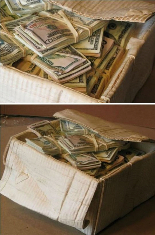 공개된 2장의 사진에는 종이 상자 안에 돈다발 뭉치들이 수북이 쌓여있다.