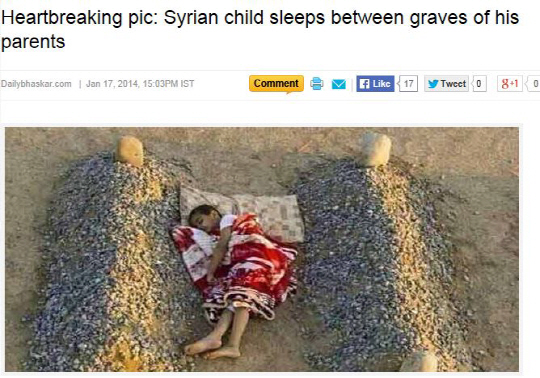 시리아 내전의 참상을 알리는 한 장의 사진이 공개돼 심금을 울리고 있다.
