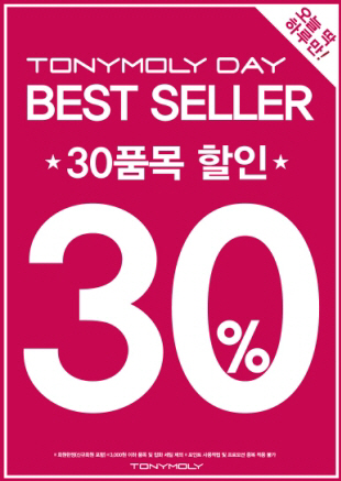 토니모리 할인 소식을 접한 네티즌들은 "토니모리 할인 대박", "토니모리 할인, 오늘 꼭 사러가야겠다", "토니모리 할인, 30%면 대박", "토니모리 할인, 살 때 됐는데 오늘 가야겠다" 등의 다양한 반응을 보이고 있다. <스포츠조선닷컴>