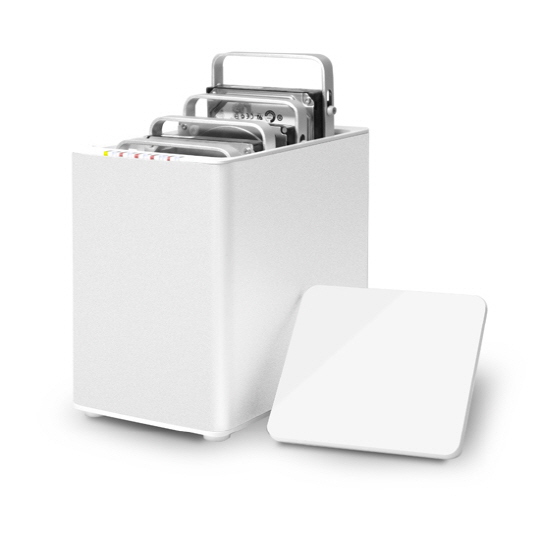 또 최대 4개의 디스크로 다양한 하드웨어 레이드(0, 1, 10, HyperDuo(Safe/Capacity), JBOD)를 구현한다.