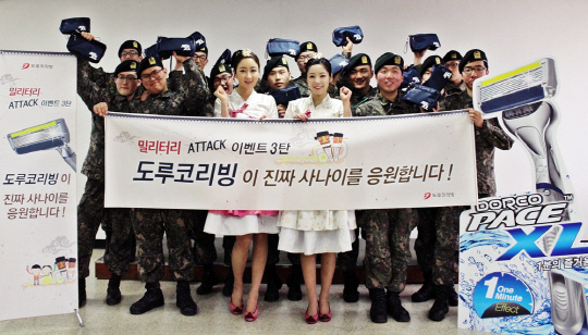 한편, 밀리터리 어택 캠페인은 군대 보급품으로 면도기를 공급하고 있는 국내 유일 업체인 도루코리빙이 장병들의 병영생활에 활력소를 제공하자는 취지의 캠페인다. 사단법인 사랑의책나누기운동본부 및 월간 'HIM'과 함께 지난 해 11월부터 오는 2월까지 총 4회에 걸쳐 지속적으로 진행하고 있다.
