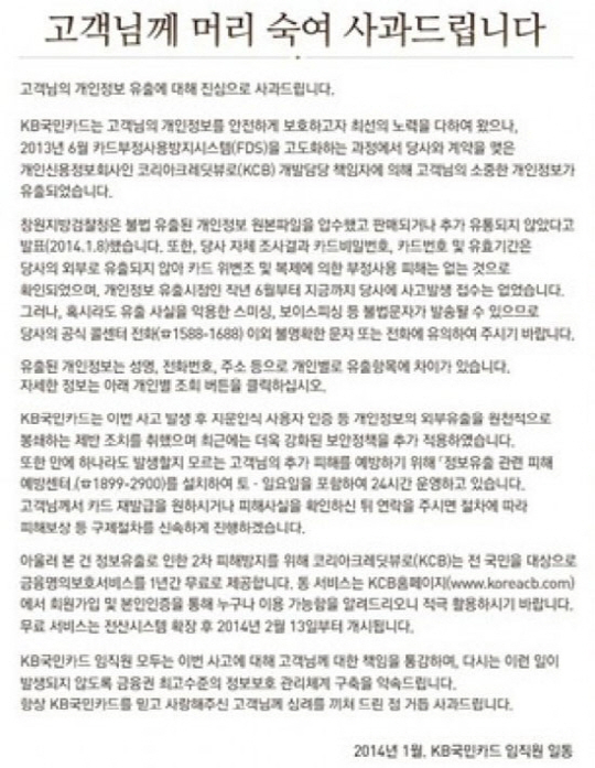 또한 이미 카드를 해지한 사람도 정보가 유출됐다. 유효기간이 경과가 됐지만 탈퇴처리를 하지 않으면 개인정보가 남아 있다는 것이 설명이다. 피해가 확대되며 피해 고객은 많게는 2000만 명까지 늘어날 전망이다.