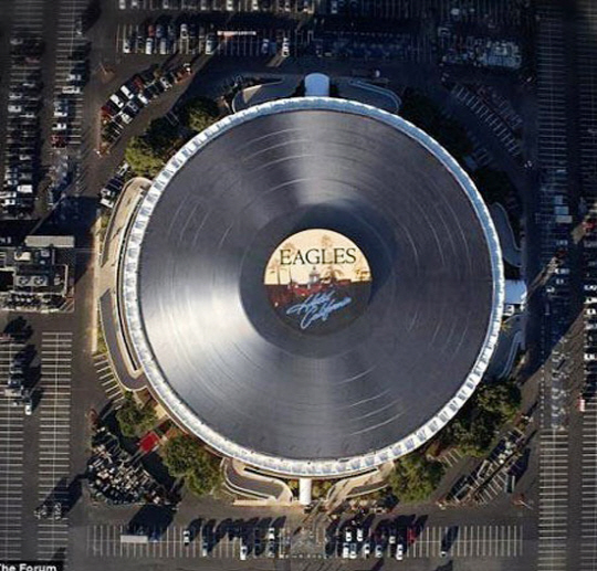 공개된 사진에는 미국 캘리포니아 잉글우드에 위치한 아레나 '포럼'의 지붕인 거대 레코드판의 모습이 담겨져 있다.