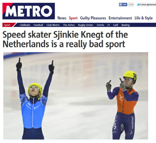 영국매체 메트로에 따르면 20일(한국시간) 독일 드레스덴에서 열린 2014 쇼트트랙 유럽선수권대회 5000m 남자 계주 결승에서 크네흐트가 역전패하자 우승자인 안현수(러시아명 빅토르 안)에게 손가락욕을 한 것.
