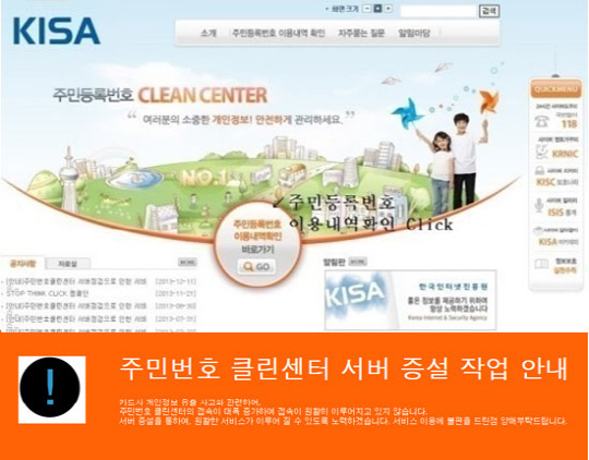현재 한국인터넷진흥원 주민번호 클린센터 웹페이지에는 서버 증설을 알리는 안내글이 게시됐다.
