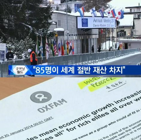 개발도상국 국제구호단체 옥스팜은 지난 21일(현지시각) 스위스 다보스에서 열린 국제 경제 포럼에서 "세계에서 가장 부유한 85명이 전 세계 70억 인구의 절반가량에 해당하는 가난한 사람들과 맞먹는 부를 소유하고 있다"고 밝혔다.