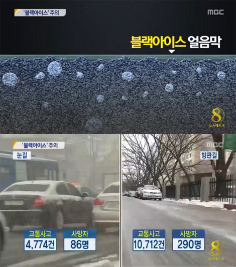 한편 블랙 아이스로 인한 사고를 피하려면 급제동과 급가속은 최대한 피하고 충분한 차간 거리를 유지해야 하며, 앞차 바퀴 자국을 따라가는 것도 도움이 된다. <스포츠조선닷컴>