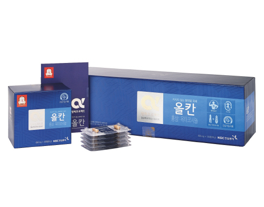 정관장 '올칸'은 6년근 홍삼과 인체에 유익한 기능성 성분을 과학적으로 배합해 홍삼과 기능성 성분의 효과를 동시에 얻을 수 있도록 복합건강기능식품 '알파프로젝트'로 개발된 제품이다.