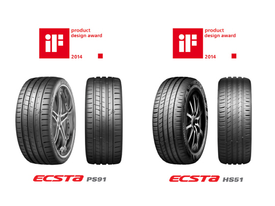 금호타이어가 자사의 S-UHP타이어 엑스타 PS91(ECSTA PS91)과 엑스타 HS51(ECSTA HS51)이 독일 'iF 디자인 어워드 2014'의 제품디자인 부문에서 본상을 수상했다고 23일 밝혔다.