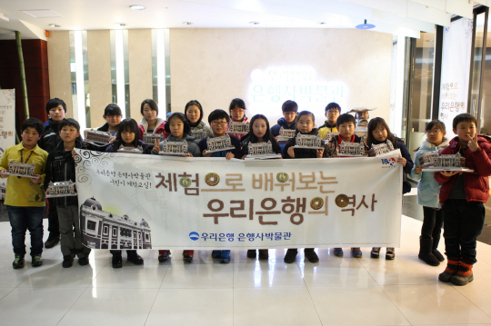 우리은행(은행장 이순우)이 22일 서울 회현동 본점 은행사박물관에서 초등학생 30명을 대상으로 '2014 제1회 은행사박물관 어린이 체험교실'을 개최했다.