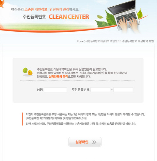 주민번호 도용확인사이트인 주민등록번호 클린센터 홈페이지가 오후 4시 현재 정상 운영되고 있다.