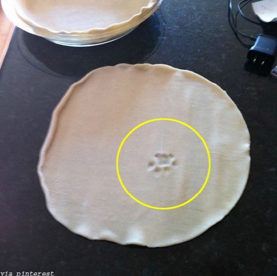 공개된 사진 속에는 원형의 파이 반죽 위에 앙증맞은 고양이의 발자국이 남아있다. 해당 글 작성자는 "정성들여 파이 크러스트를 만들었다. 잠깐 다른 곳에 갔다 왔는데 이렇게 되어 있었다"는 글을 덧붙였다.