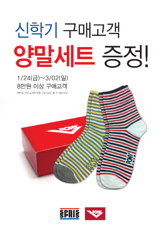 스포츠 브랜드 스프리스와 포니가 24일부터 3월 2일까지 신학기 제품 구매 고객들을 위해 다양한 이벤트를 실시한다.