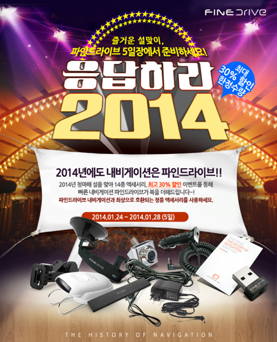파인디지털은 설을 맞이해 24일부터 5일간 네비게이션 파인드라이브 인기 액세서리 14종을 할인 판매하는 설 맞이 고객감사 특별 이벤트를 진행한다.