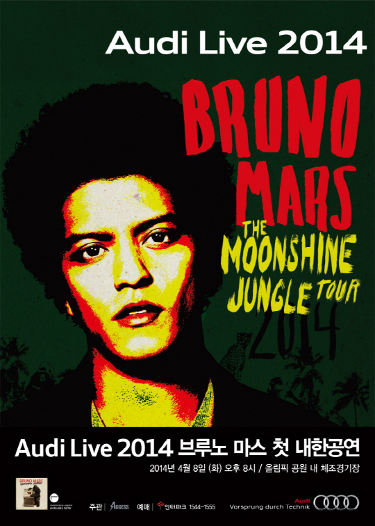 아우디 코리아는 '아우디 라이브 2014-브루노 마스 콘서트'의 공식 웹사이트와 페이스북에서 30명을 추첨해 1인당 2매씩 공연 티켓을 증정하는 이벤트를 진행한다.