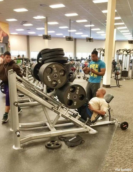 '헐크 다리 가진 남자' 사진 속에는 헬스장에서 한 남성이 바벨을 여러 개 쌓아 올린 기구로 운동하고 있는 모습이 담겨져 있다.