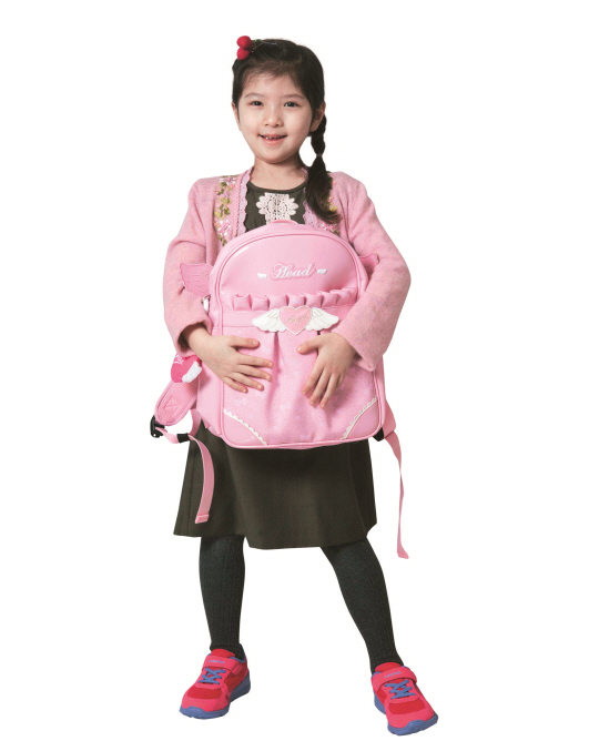 아직은 레이스나 리본을 좋아하는 나이. 더욱 사랑스러운 스타일을 완성하고 싶다면 '엔젤'백팩이 좋겠다. 이름 그대로 엔젤을 모티브로 한 디자인으로 탈착 가능한 날개 모양의 디테일과 러플이 달린 프론트 디자인이 돋보인다. 가격은 12만 9천원.