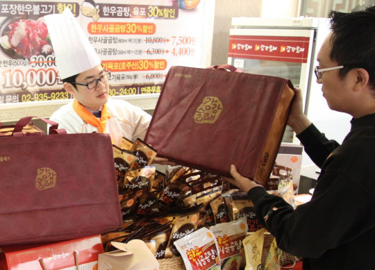 또 쇼핑몰과 전화주문, 전 매장에서는 100% 한우사골곰탕 대용량세트(800ml·5팩·15인분)는 4만원, 소용량세트(350ml·5팩·10인분)는 2만4500원, '칠칠한우떡갈비세트(3박스·1.08kg)' 4만4500원에 최대 43% 할인 판매한다.