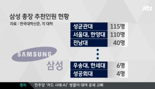 삼성은 "학벌·지역·성별을 불문하고 전문성과 인성을 갖춘 인재를 선발한다는 '열린 채용' 정신을 유지하면서 채용제도 개선안을 계속해서 연구, 검토해 나가겠다"고 말했다.