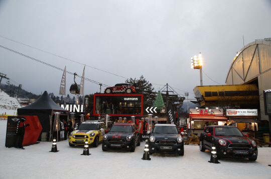 프리미엄 소형차 브랜드 MINI가 100여명의 고객들과 함께한 'MINI 스노우 드리프트 2014' 행사에서 슬로프 1개를 통째로 빌려 그룹 라이딩을 펼치는 화려한 스노우 퍼포먼스를 선보였다.